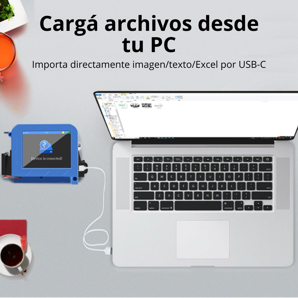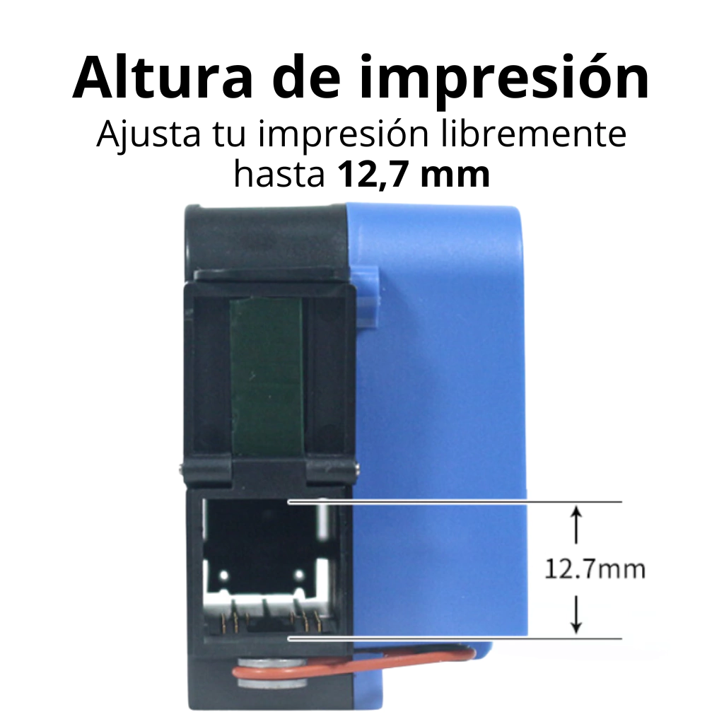 Es compatible con materiales como cartón, plástico, metal, madera, y más, y cuenta con más de 20 idiomas disponibles, incluyendo español y portugués.