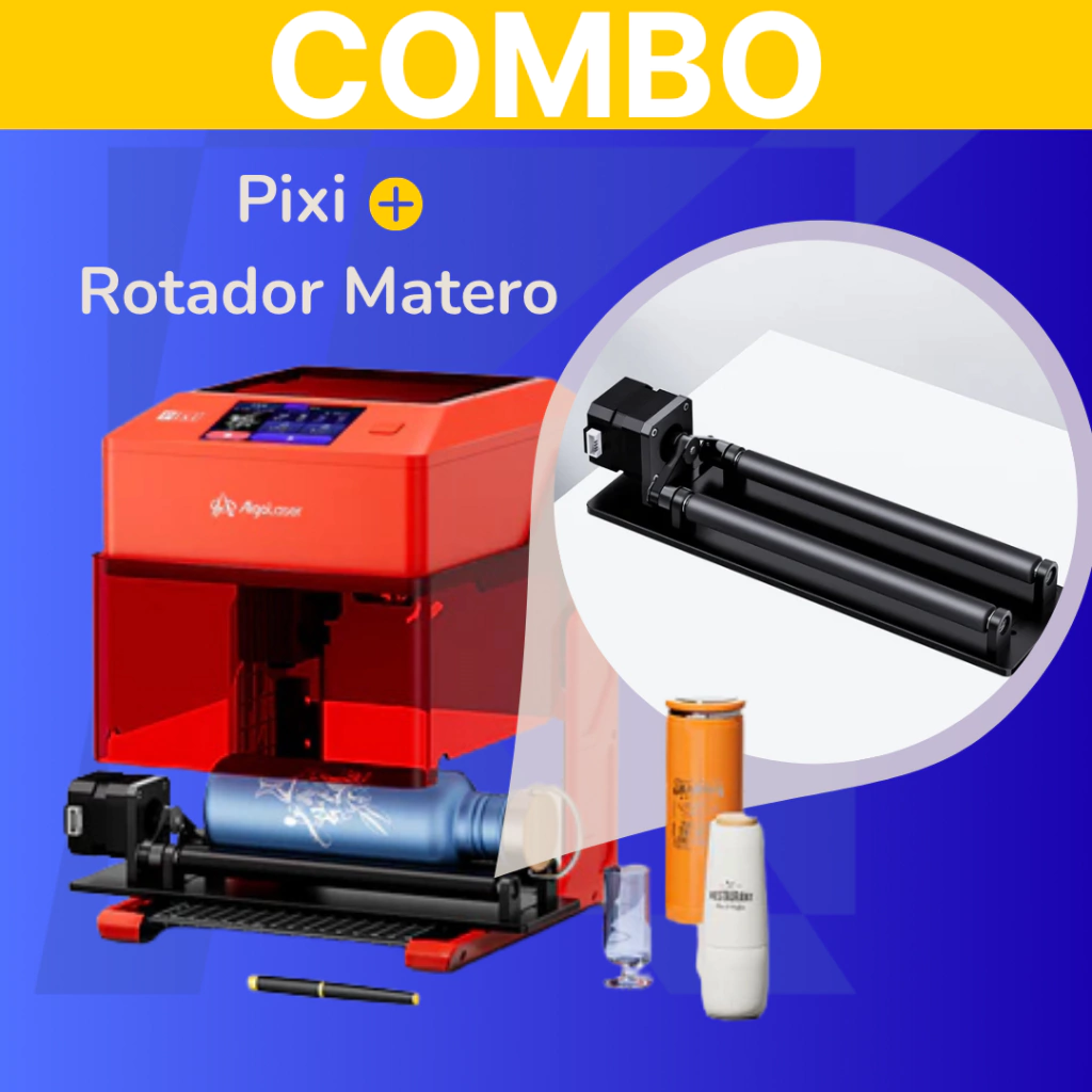 Grabadora Láser Pixi + Rotador Matero: potencia, precisión y practicidad en un solo pack.
