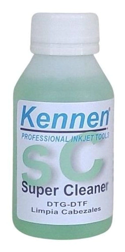 SUPER CLEANER es un fluido de limpieza desarrollado por KENNEN Professional Inkjet Tools como la pieza clave para recuperar el correcto funcionamiento de equipos con tintas DTF y DTG. FAMILIA DE PRODUCTOS PARA EQUIPOS DTF y DTG.