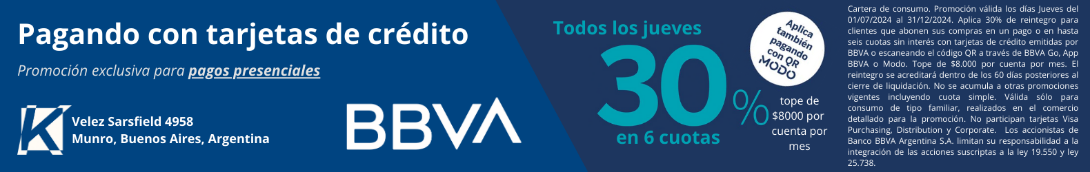 Promoción valida unicamente para compras en sucursal física. Para más info consulta el aviso legal del Banco BBVA Argentina S.A https://go.bbva.com.ar/fgo/web_beneficios/beneficio.html?id=70702